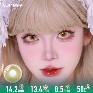 These colored contacts create the most beautiful soft-focus effect on your whole appearance! When I wear these cosmetic lenses, I look more gentle, approachable, and naturally pretty. The pale golden tones brighten up your entire face without being overwhelming!